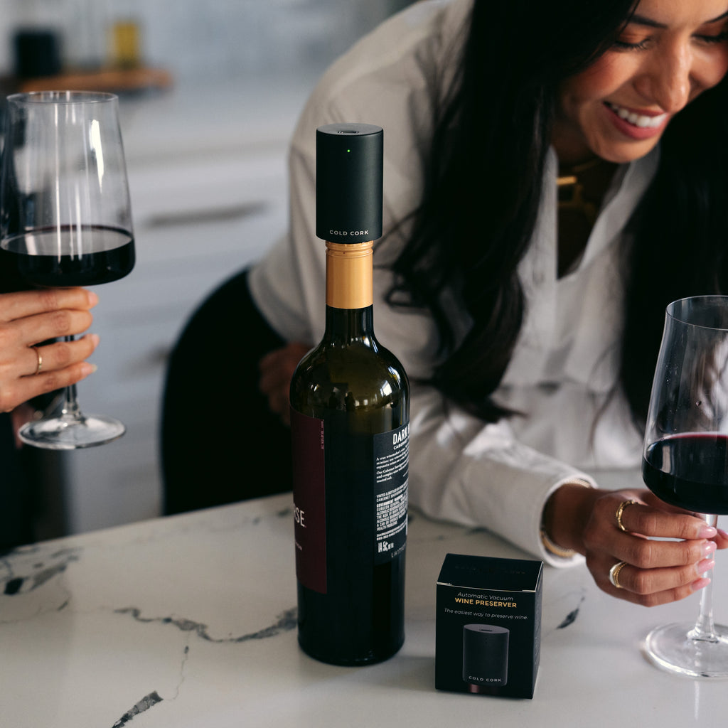 Enjoy wine on your schedule. The Cold Cork Automatic Wine Preserver removes air from an opened bottle with zero effort—helping preserve the wine inside so you can return to it later.